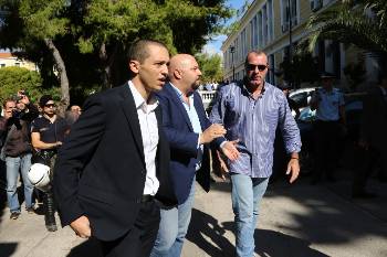Κατά την έξοδό τους από τον ανακριτή και υπό το «βλέμμα» των δυνάμεων καταστολής, οι τρεις βουλευτές αξιοποίησαν τις κάμερες για να απειλήσουν, κλωτσήσουν και σπρώξουν φωτογράφους, δημοσιογράφους, εικονολήπτες.