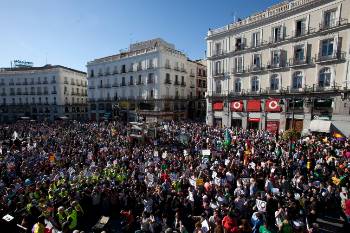Χιλιάδες βγήκαν και πάλι την Κυριακή στους δρόμους της Μαδρίτης διαδηλώνοντας ενάντια στις σαρωτικές περικοπές και στο πρόγραμμα λιτότητας, που συνεχίζει να εξαθλιώνει τους εργαζόμενους και να απειλεί ακόμη και την ίδια τους τη ζωή.